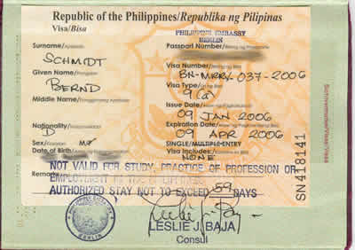 Eigentlich ist das mit den Einreisebestimmungen ganz einfach. Bis 3 Wochen gibts gratis, dann kostet es Eintritt. Will heißen, wer länger als 21 Tage bleibt benötigt ein Visum, entweder vorher durch die Botschaft oder ein Konsulat ausgestellt (ca. 30,00 €) oder später beim Imigration Office in den Philippinen als Verlängerung der Aufenthaltsgenehmigung (25,00 - 30,00 €). Ich habe mich für die erste Variante entschieden und das hat prima geklappt. Das Visaformular gibts als download bei der Botschaft der Philippinen, die auch diese Visainformationen bereitstellt. Der Reisepass muss ab Einreise noch 6 Monate gültig sein.