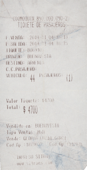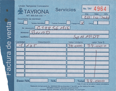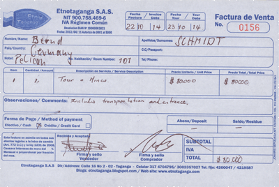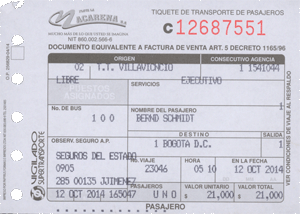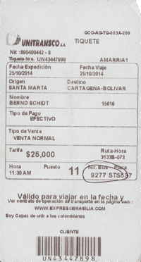 Erst dachte ich, dass ist eine Ausnahme, mittlerweile habe ich gelernt, es ist System. Ist man hier als Ausländer in einem Hotel meiner Preisklasse, also eher billig, dann hat es den einen oder anderen kolumbianischen Mitbewohner, der das Hoten nicht gebucht hat - wie ich - um Geld zu sparen, sondern, der sich schlichtweg kein teureres leisten kann. Nun ist da Reisen aber auch für diesen Mitbürger am Günstigsten, wenn man längere Strecken mit einem Flug überwindet, was aber eigentlich nur günstig ist, wenn man den Flug im Internet bucht und mit der Kreditkarte bezahlt. Soweit so gut, das ist für uns jetzt ja auch nichts Neues.Das Problem des eher mittellosen Kolumbianers ist nun, dass er weder über ein Bankkonto, noch über eine Kreditkarte verfügt. Also ist Kreativität gefragt und daraus hat sich ein System entwickelt. Braucht man einen Flug, bucht man den über jemanden, der über eine Kreditkarte verfügt. Kennt man keinen fragt man die Mitmenschen im Hotel, bzw. besucht ein Hotel seiner Wahl und versucht über den Portier einen "Agenten" zu finden. So sprach mich direkt am zweiten Tag der Portier meines Vertrauens (Er machte sich immerhin anschließend mit einer richtigen Idee zum Erwaerb von Fußballtickets verdient) an, ob ich wohl für eine andere Frau ein Ticket buchen könnte. Nach einigem Überlegen und der Erkenntnis, dass meine Kreditkarftendaten im Hotel ja ohnehin bekannt sind, habe ich darauf eingelassen. Ticket gegen Cashmoney plus 15%. Macht dann einen Agenturgewinn von 10%, was sich jedes Reisebüro wohl wünschen würde.