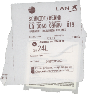 So buche ich also ein Ticket von Bogota nach Cali, checke sie, weil ich ein netter Mensch bin und sie gleich fliegen will, direkt ein und sende ihr per Email die Boardingkarte. Fertig!